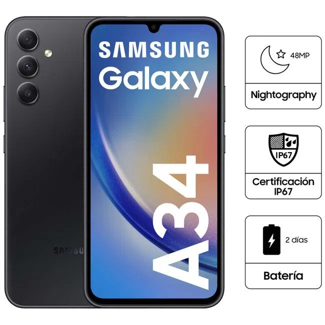 Smartphone SAMSUNG Galaxy A34 6.6″ 6GB 128GB 48MP + 8MP + 5MP Grafito